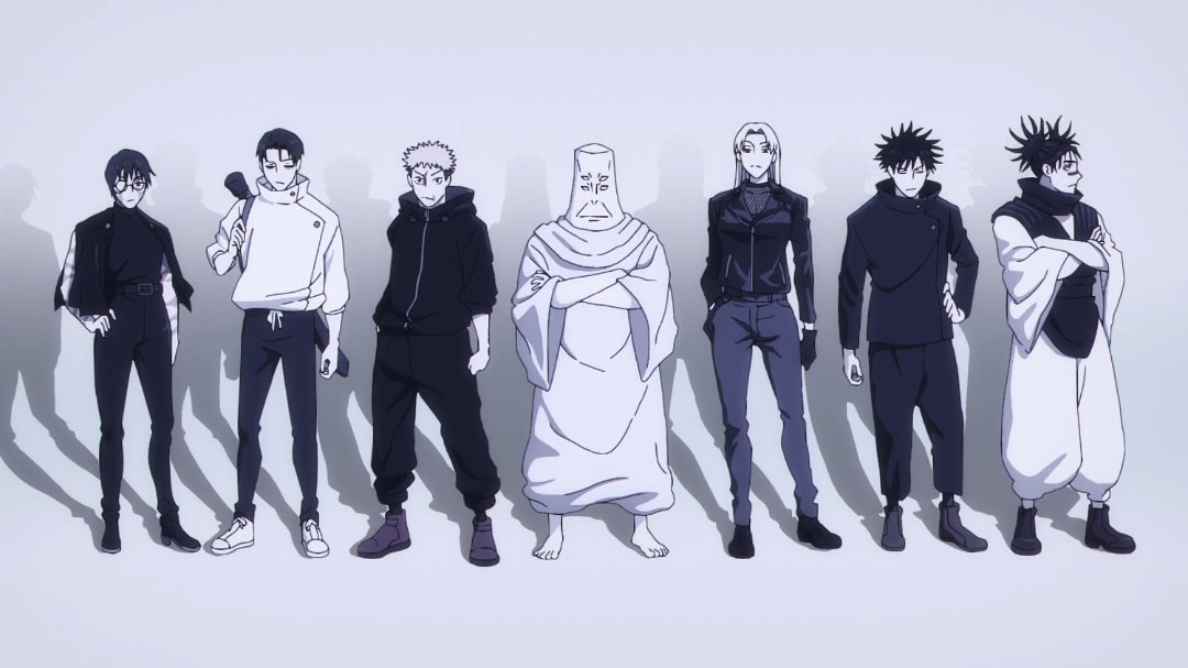 There’s a moment in the opening where the sorcerers stand together in rigid formation, and it immediately triggers déjà vu. The composition mirrors the iconic opening pose from Ghost in the Shell: Stand Alone Complex, a visual shorthand long used in anime to signal that the story is entering dangerous territory. When characters line up like this, it’s never for show—it means something irreversible is about to begin.