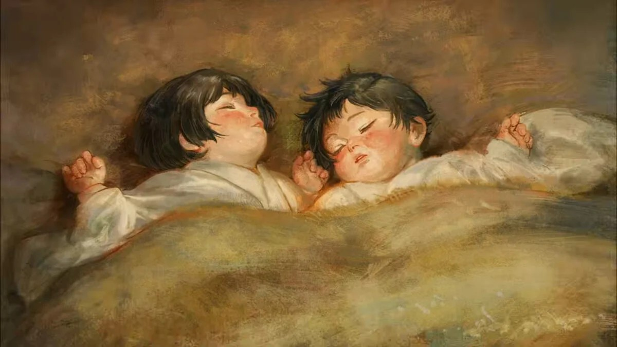 The opening briefly shows Mai and Maki Zenin asleep together as infants, a rare image of peace before their lives were shaped by cruelty. This moment references Two Sleeping Children (1612–1613) by Peter Paul Rubens, a melancholic painting of orphaned siblings that balances innocence with quiet tragedy.
